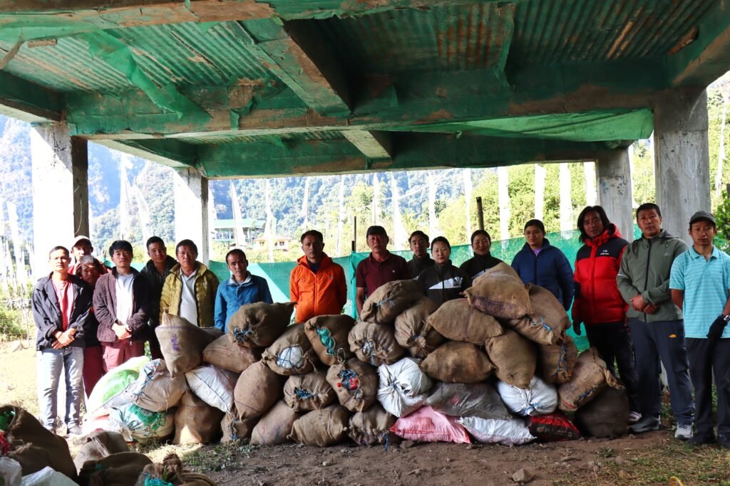 During the drive, around 42 sacks of garbage were collected from various campsites and trail sections. Fifteen ponies (pack animals) were engaged to transport the collected waste down to Yuksam for proper disposal. The waste was systematically segregated, and recyclable materials were sent to the Resource Recovery Centre at Yuksam.