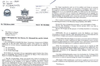 Home Department, Government of Sikkim files FIR on June 6, 2025, against Noel Sharma, Bikramadi…