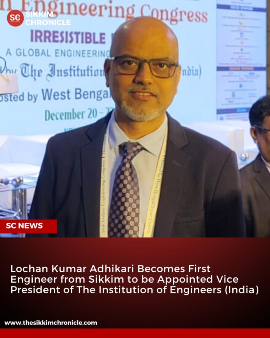 Gangtok: In a landmark achievement for Sikkim’s academic and engineering fraternity, Lochan Kumar Adhikari has become the first engineer from the State to be appointed Vice President of The Institution of Engineers (India) [IE(I)], the country’s largest and most prestigious professional engineering body. His elevation marks a historic milestone not only in his distinguished career but also in Sikkim’s growing presence on India’s national engineering map.