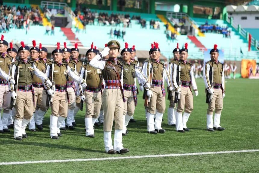 Thereafter, March Past comprising contingents from Indo-Tibetan Border Police (ITBP), Sashastra Seema Bal (SSB), 6th Battalion Meghalaya Police, Sikkim Armed Police (SAP), 2nd Indian Reserve Battalion (IRBn), 3rd Indian Reserve Battalion (IRBn), Sikkim Police (Male), Sikkim Police (Female), Sikkim Forest Department, Sikkim Home Guard and Civil Defence, Sikkim Veer Gorkha (Ex- Servicemen), NCC, Parade 21C, Sikkim Police Pipe Band and Sikkim Police Brass Band was exhibited.