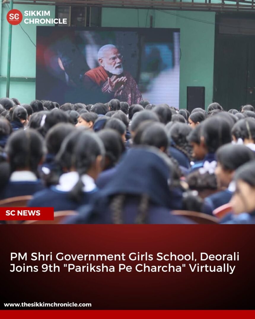 Gangtok:PM Shri Government Girls School, Deorali actively participated in the 9th edition of Pariksha Pe Charcha by joining the programme virtually. Students and teachers attentively followed the interactive session, which focused on examination preparedness, stress management, and motivation, providing valuable guidance ahead of the upcoming examinations.