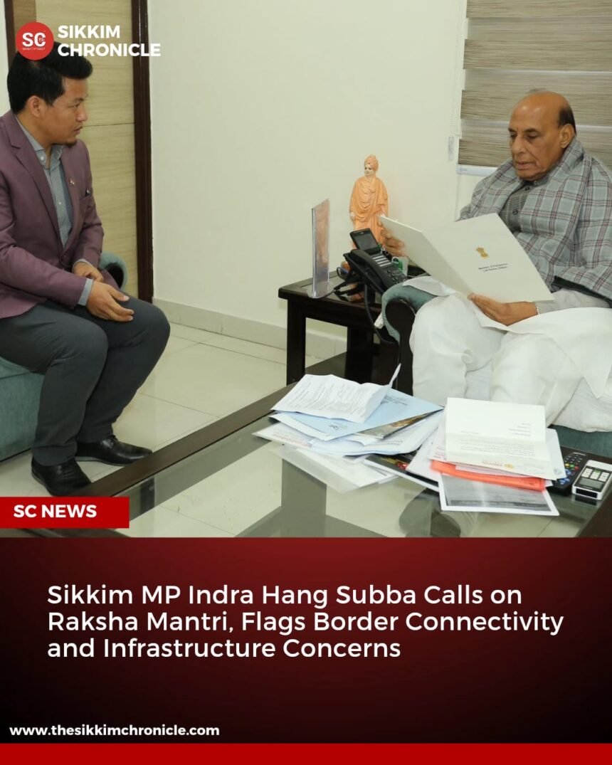 Indra Hang Subba, Member of Parliament (Lok Sabha) from Sikkim, today called on Shri Rajnath Singh, Hon’ble Raksha Mantri, Government of India, and held discussions on key strategic and developmental issues concerning the border State.