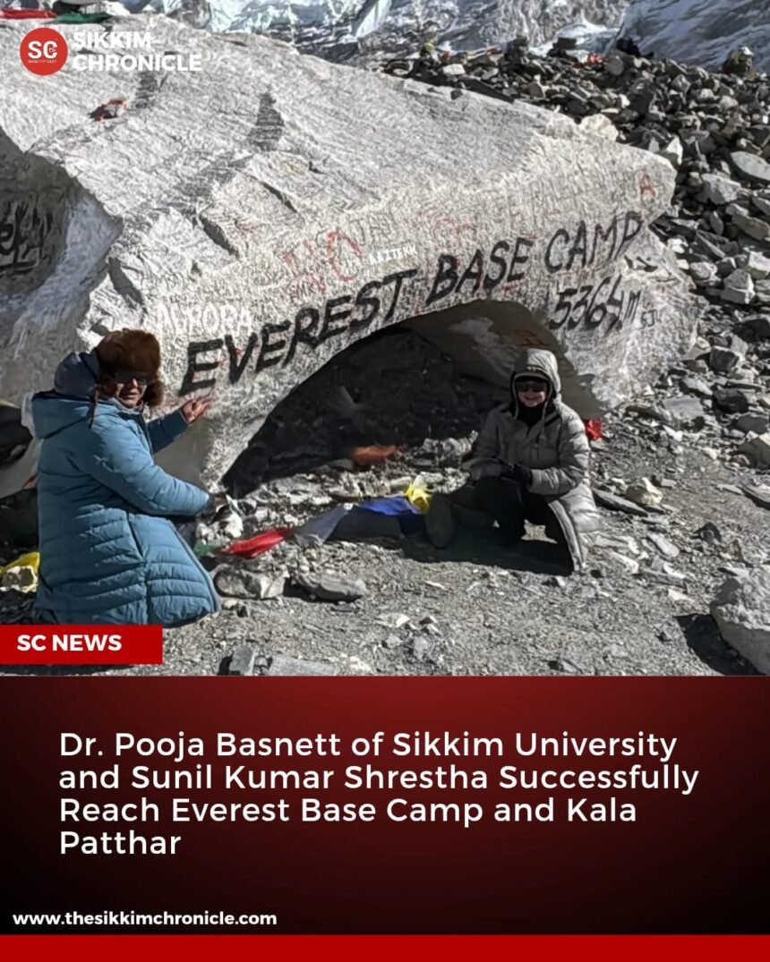 Dr. Pooja Basnett, Assistant Professor at Sikkim University, and her husband, Sunil Kumar Shrestha, Software Engineer at Cisco Systems, have successfully completed the challenging trek to Everest Base Camp and Kala Patthar on December 28, marking a remarkable personal and inspirational achievement.